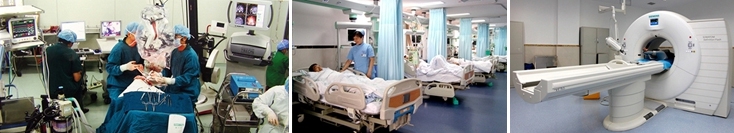 醫療設備先進 院本部擁有PET-CT、醫用電子直線加速器、高劑量率三維后裝治療系統、炫速雙源CT、寶石能譜CT、128層螺旋CT、3.0T MRI、1.5T MRI、平板DSA、SPECT、高強度超聲聚焦腫瘤治療系統、影像引導放射治療系統(IGRT)等一批大型醫療設備。